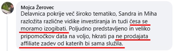 Dogodek v živo ali katerkoli njegov del ne predstavlja naložbenih priporočil, naložbenega svetovanja ali nagovarjanja k investiranju.