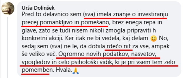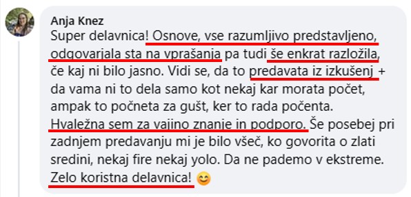 Vsi udeleženci boste prejeli posnetke seminarja in boste lahko seminar tudi večkrat poslušali, saj bo v njem veliko informacij in je priporočljivo, da si posnetke še kdaj pogledate. V kolikor boste imeli še kakšna dodatna vprašanja, katera nisva odgovorila tekom seminarja, nama pišite na email in vam z veseljem pomagava.