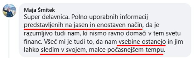 Če imate občutek, da vam prihodki hitro spolzijo neznano kam, bomo to rešili. Posebej dragoceno bo tudi za vse, ki verjamete, da nimate denarja za investiranje – presenečeni boste, da lahko že s 25€/mesec začnete ustvariti finančno svetlejšo prihodnost.