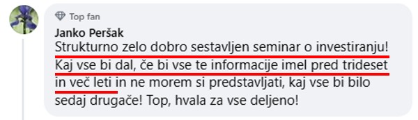 Da. Ta seminar je namenjen prav temu. Da pridobiš znanje katerega potrebuješ, da začneš samostojno investirati. Hkrati pa obdelamo tudi ključne tematike, ki so potrebne pred investiranjem – ureditev svojih financ. In izvedeva simulacijo trga, da vas kar se da pripraviva na možna dogajanja, ki se lahko pojavijo tekom investiranja. To znanje je ključno za uspešnost pri investiranju in da izgubite strah in razumete kako finančni trgi delujejo.