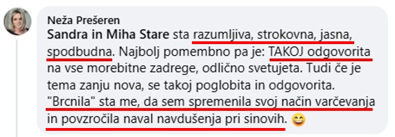 Če boste naleteli na kakšno oviro ali ne boste imeli jasnosti glede katere izmed tematik nama lahko pišete na email in vam hitro in jasno odgovoriva.